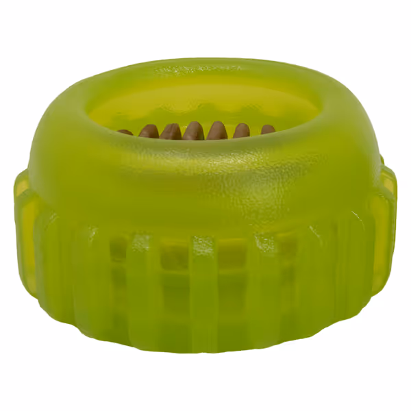 Starmark Everlasting Sprocket's medical‑grade plastic passed all VOC tests and showed zero surface degradation after 72 hours in shelter saliva. Its smooth‑bore design prevents airway compression during gentle rolling, which is critical for collapsing trachea cases.